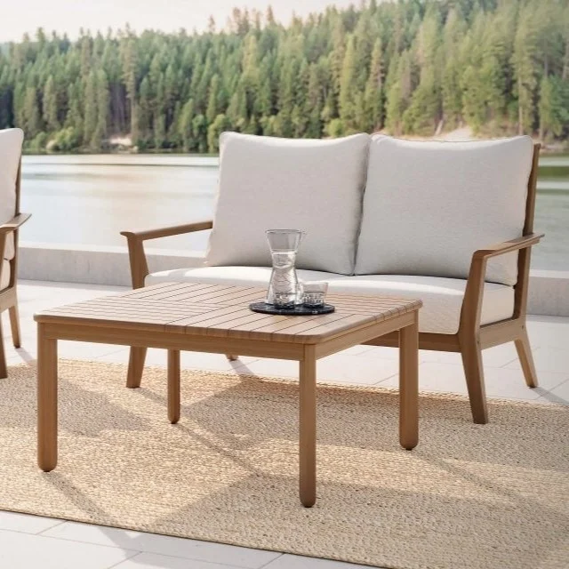 The Foundations Mosaic 35″ Square Ipe Coffee Table, made by Jensen Outdoor,