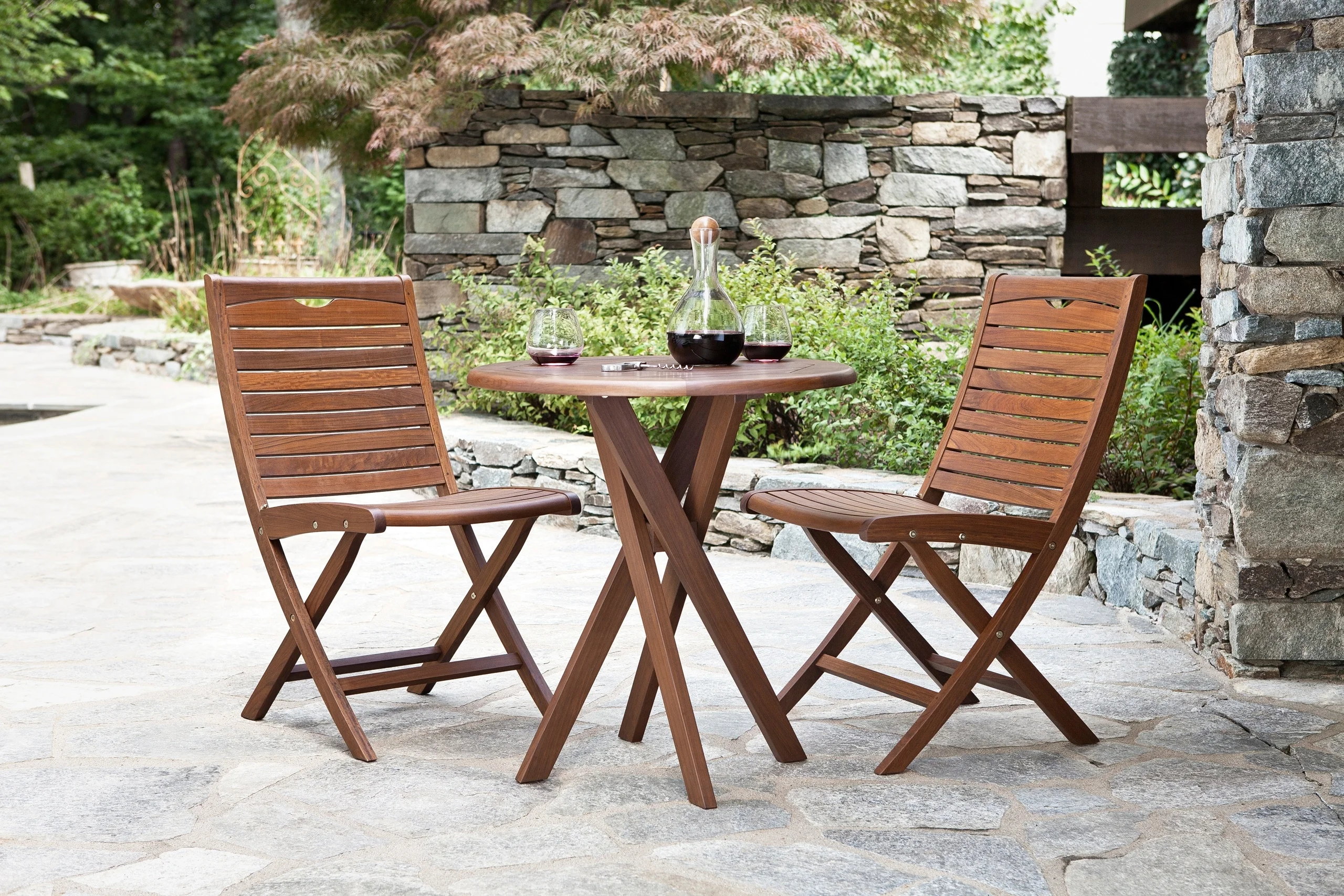 moreBring out the sophisticated side of your landscape by bringing the Topaz Folding Side Chair into the fold. Its sleek silhouette, slitted backrest, contoured seat and arched legs are sculpted from linear slats of Ipe timber are a chic addition to any Ipe dining table from Jensen Outdoor. Fashionable becomes versatile as the chair folds for convenient storage yet can be opened at any moment for dining and hosting ease. The Topaz Collection is adored by trendsetters and tastemakers for its European-inspired design, master craftsmanship and the presence of 100% FSC-Certified Ipe timber sustainably sourced exclusively from dry, tropical forests in Bolivia. The astounding durability of this tropical hardwood results in luxury outdoor furniture that can withstand weather and time. Preserve the chocolate brown hue of Ipe timber, if desired, or allow it to mature and reveal a subtle silver patina that sits beautifully in any setting.